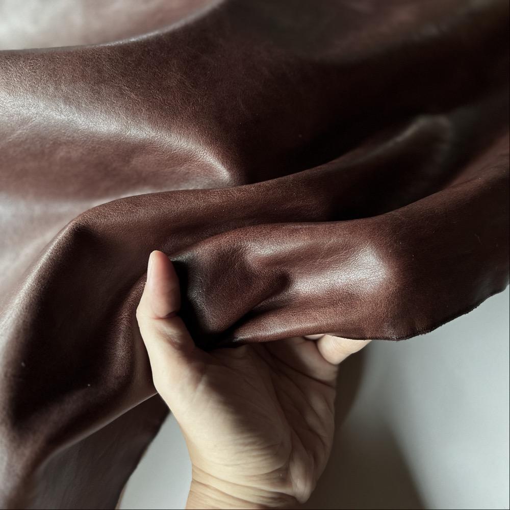 -義大利茶芯處理植鞣牛皮,粗獷自然的皮面更顯皮革特色,使用久了摩擦處會透出皮革本色,呈現漸層刷舊感。