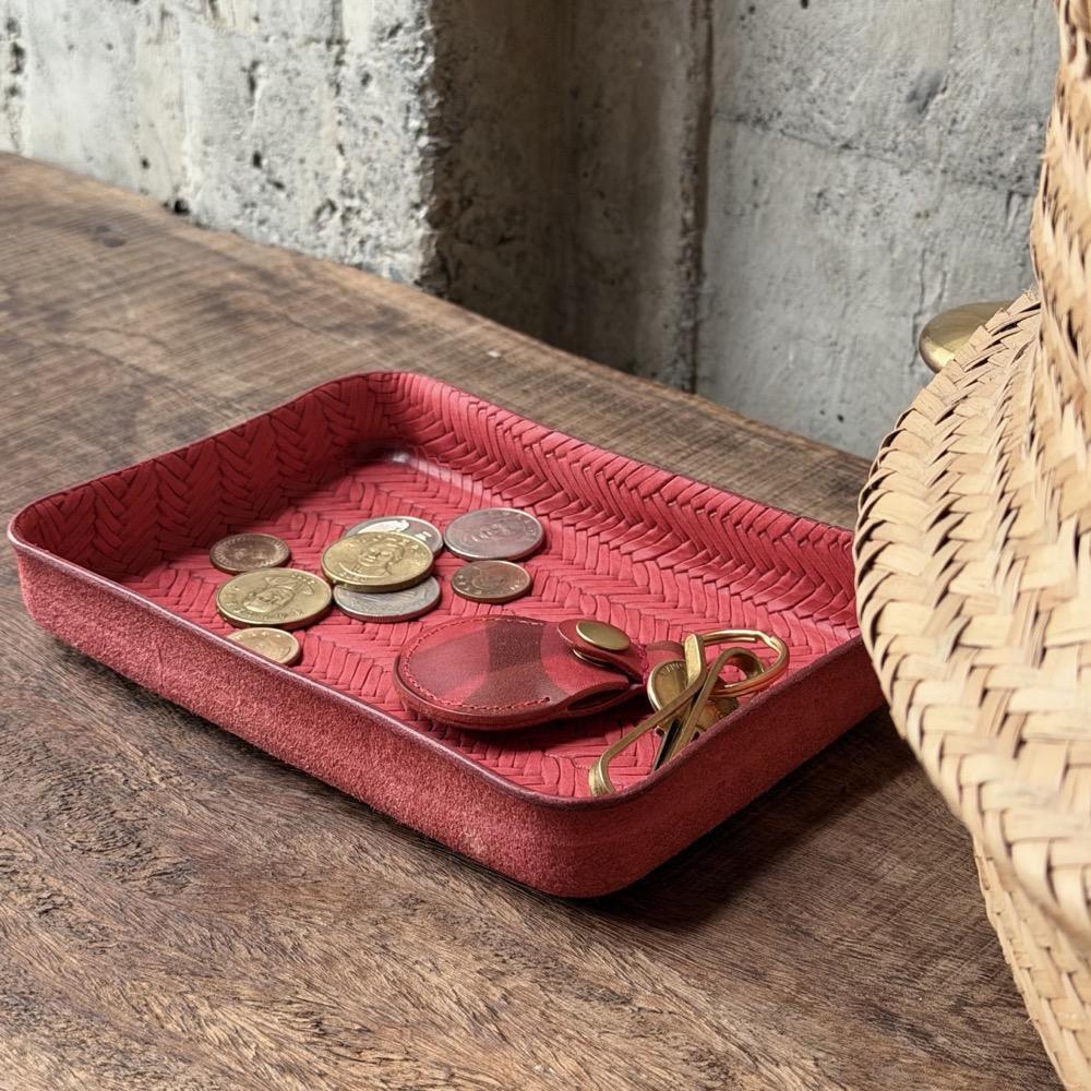 扎實的苯染植鞣牛皮,壓印出非常立體的藤織紋路。