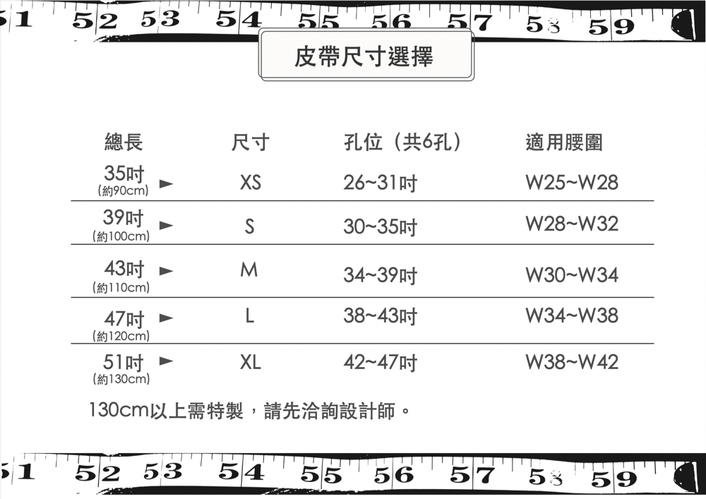 ✎請勿以褲子上標示的腰圍來選擇尺寸,皮帶可能會無法使用。