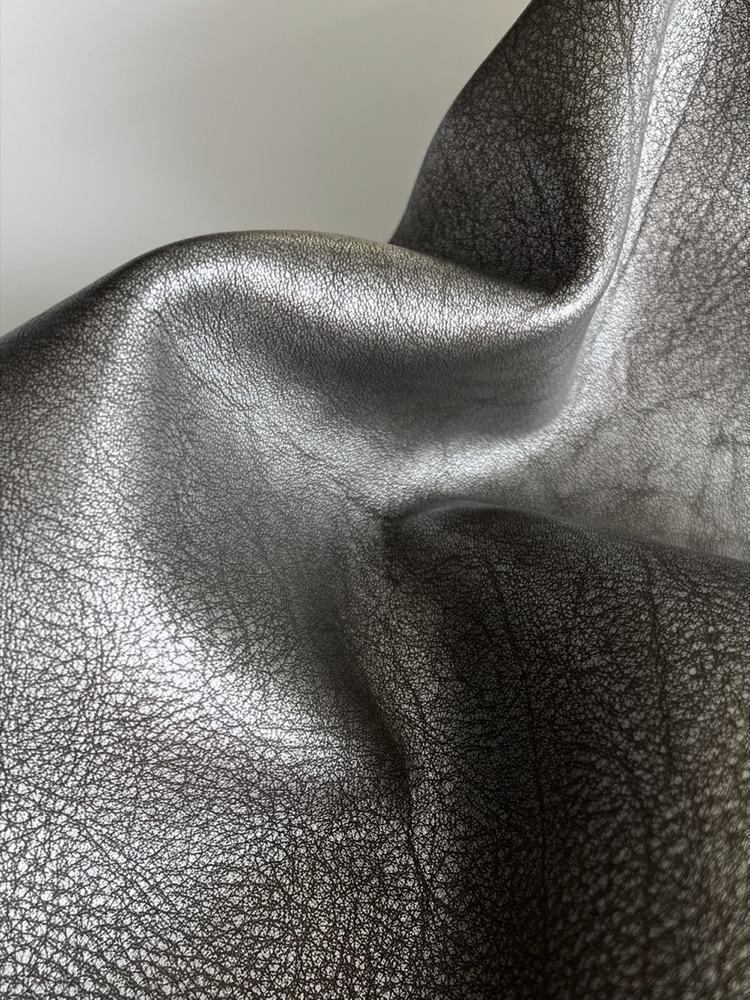 -義大利牛皮製作,特殊製法讓牛皮呈現Q彈手感,銀色的金屬光澤表面搭配黑色粗獷紋路,非常帥氣,每個紋路都是獨一無二。