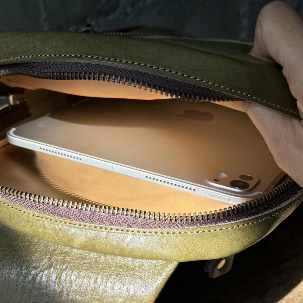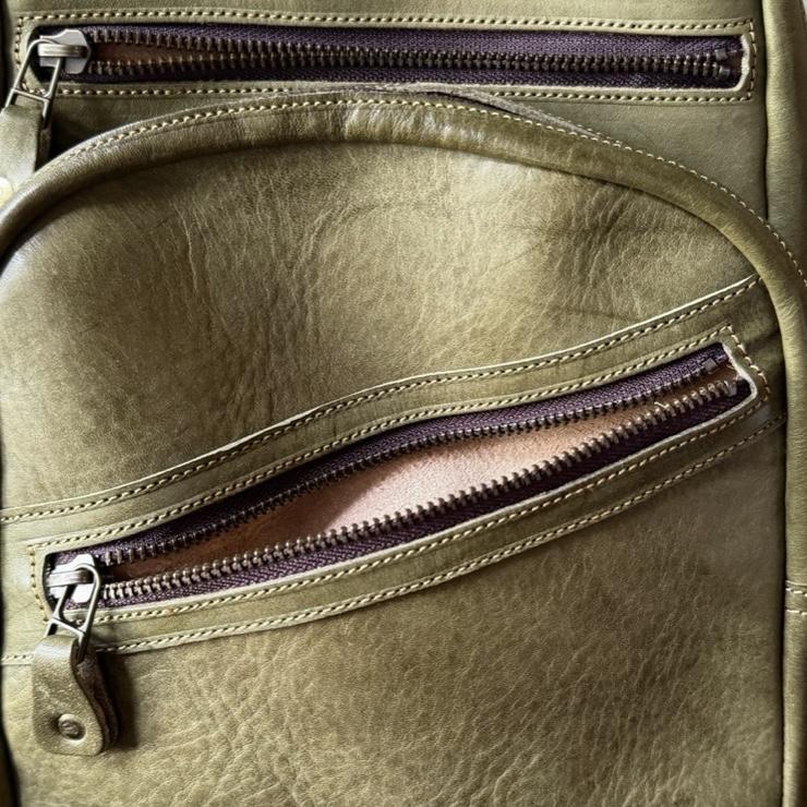 美洲多脂植鞣牛皮、內裡義大利植鞣牛皮、黃銅五金、YKK拉鍊