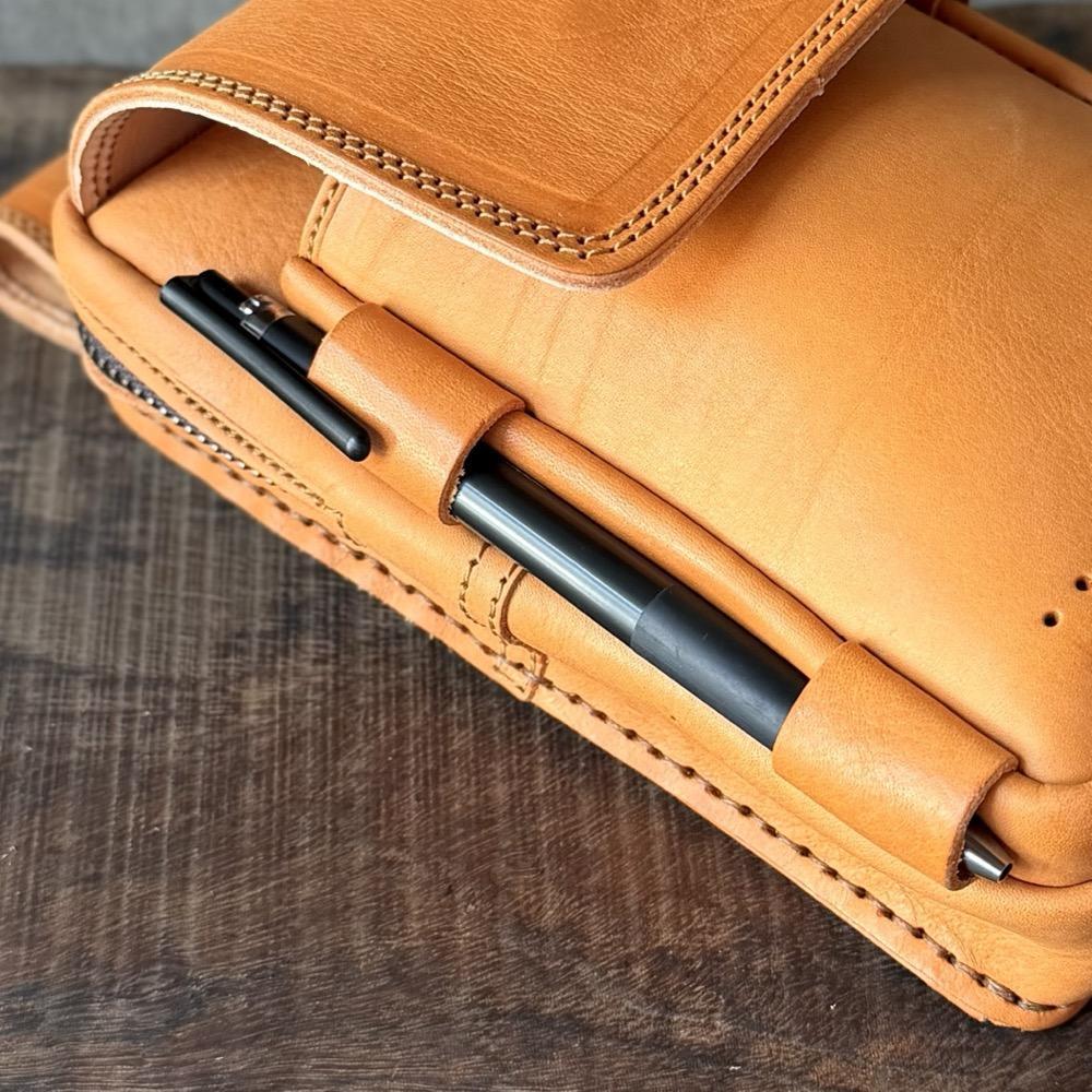 -採用美洲多脂植鞣牛皮製作,皮革油脂豐富有彈性,隨著使用越變越油亮。