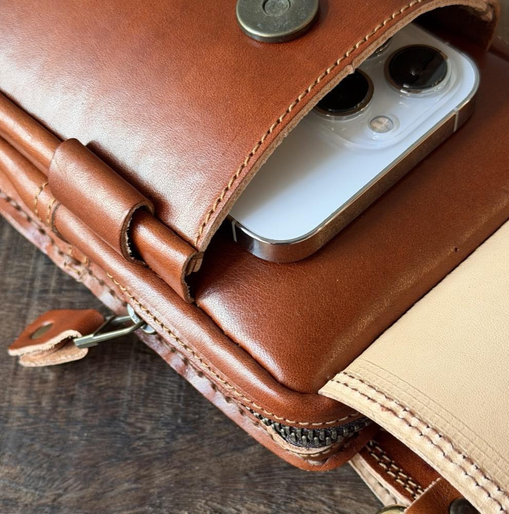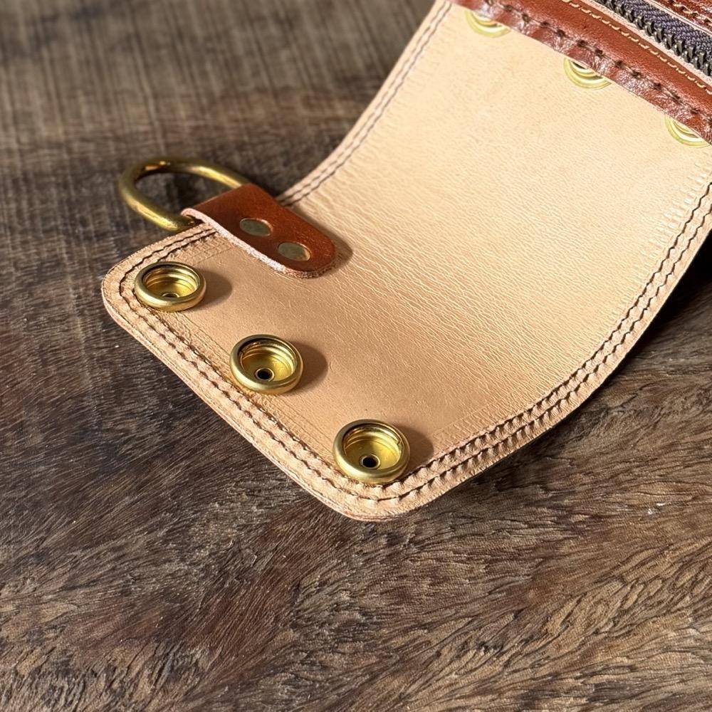 義大利多脂植鞣牛皮 / 內裡義大利植鞣牛皮 / YKK拉鍊 / YKK四合釦 / 黃銅D環